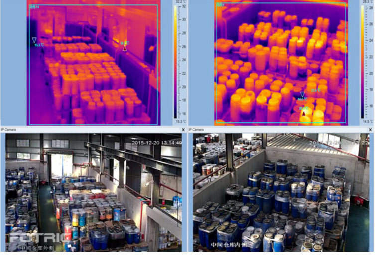 危險品倉庫因儲存著易燃易爆易腐蝕等化工原料,若發(fā)生火災(zāi)爆炸,因人員傷亡大、經(jīng)濟損失大等后果,已成為整個社會安全防范的重點對象。熱像儀可以快速有效發(fā)現(xiàn)隱火、及時定位火災(zāi)著火點和地點范圍,并及時通知現(xiàn)場人員,做到早預(yù)防早撲滅,將火災(zāi)扼殺在萌芽之中。