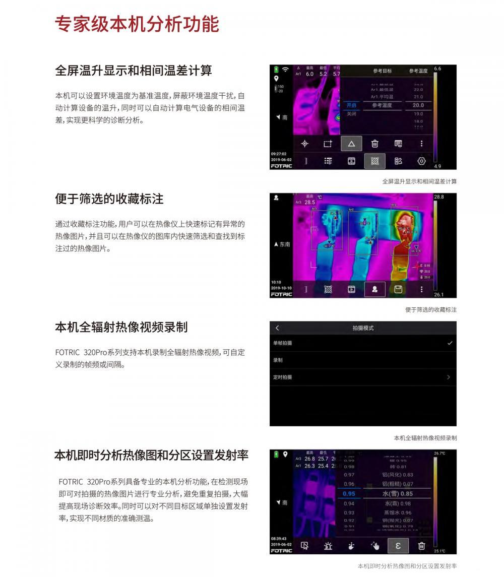 | 本機(jī)全輻射圖像/視頻分析(在熱像儀上) | 可以在熱像儀上編輯和分析已經(jīng)保存的全輻射熱像圖和熱像視頻 |