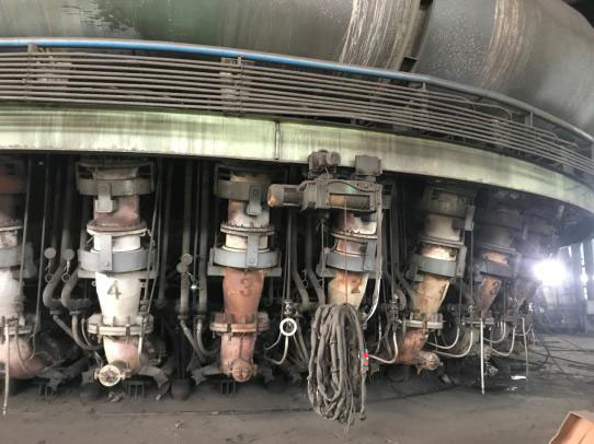 送風(fēng)支管內(nèi)部有隔熱材料,隨著高爐冶煉的強化和風(fēng)溫、富氧、頂壓水平的提高,受到外殼和耐火磚材料膨脹系數(shù)的差異影響,耐火磚可能出現(xiàn)侵蝕、脫落,導(dǎo)致送風(fēng)裝置會出現(xiàn)漏風(fēng)、發(fā)紅的現(xiàn)象,如果不及時維修會引起外殼燒穿,產(chǎn)生安全隱患,影響正常生產(chǎn),造成能源嚴重損耗和產(chǎn)量的下降,所以送風(fēng)支管是決定高爐能否正常生產(chǎn)的關(guān)鍵。
