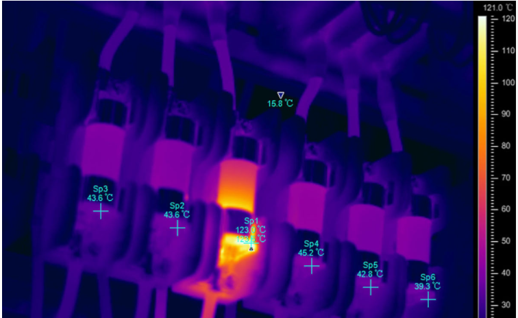 熔斷器可及時切斷電路保護設備不受損壞,為了保障熔斷器和電力系統(tǒng)的溫度運行,必須對熔斷器進行定期檢修。使用熱像儀檢測,可以直觀展現(xiàn)設備發(fā)熱情況和熱分布,快速查找出問題器件。