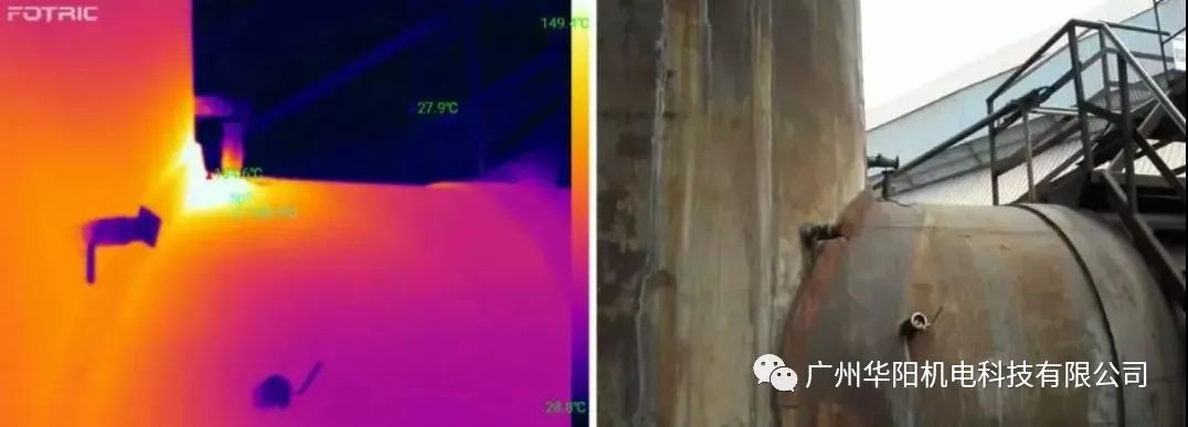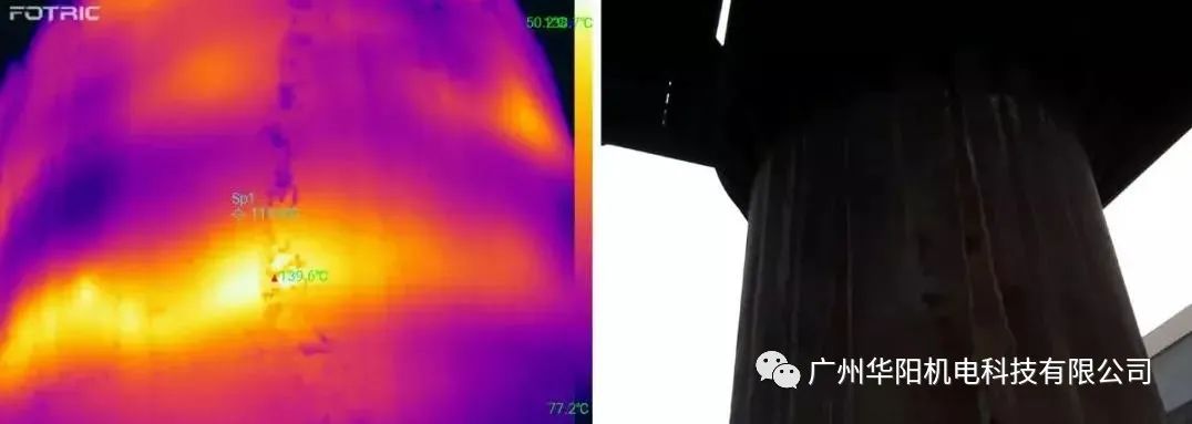 管道保溫脫落,其脫落處溫度偏大,可在熱像圖中清晰顯示,能提醒工作人員及時修復(fù)保溫層,提高節(jié)能效果。