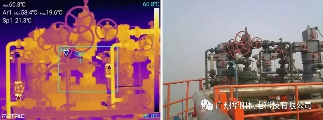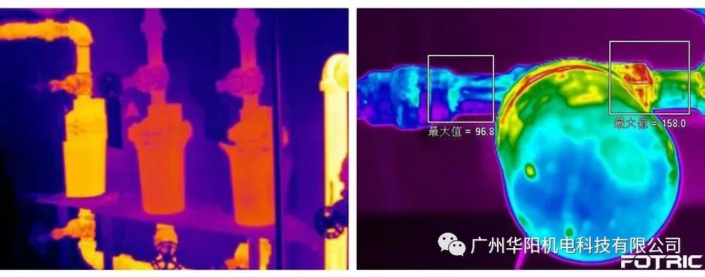 管道出現(xiàn)滲漏時,泄漏介質(zhì)與管道外壁會存在溫差,通過FOTRIC熱像儀可以提前發(fā)現(xiàn)故障。